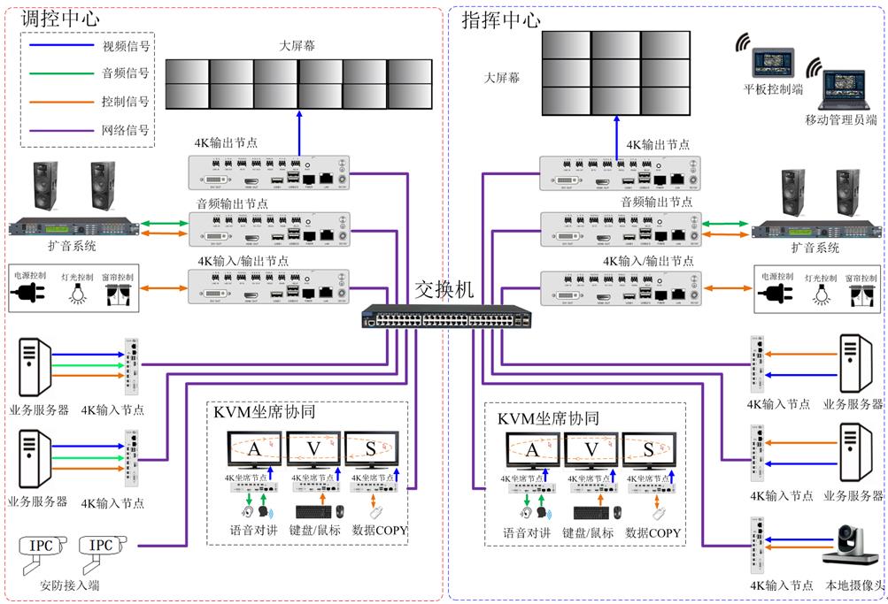 2.智能KVM坐席管理,通过分布式KVM管理系统可在不同的操作席位控制不同位置的计算机,同时切换显示到大屏幕。